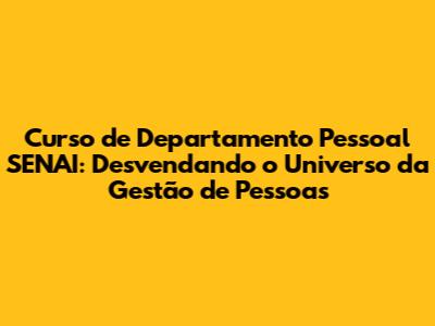 Curso De Departamento Pessoal SENAI: Sua Jornada Profissional
