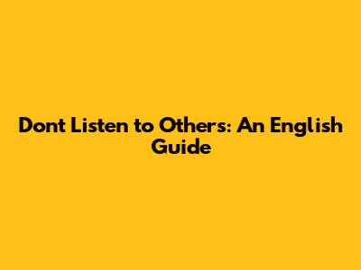 Don't Listen To Others: An English Guide