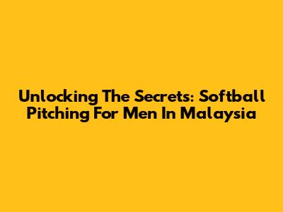 Unlocking The Secrets: Softball Pitching For Men In Malaysia