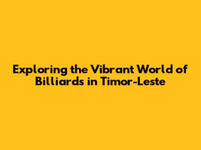 Exploring The World Of Timor-Leste Billiards