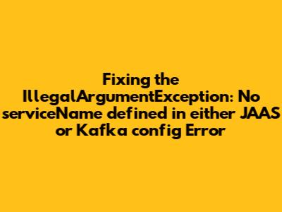 Hitting that IllegalArgumentException: No serviceName defined in either JAAS or Kafka config can be a real pain, but it's almost always solvable by correctly configuring your JAAS settings. Remember, the serviceName (or the login context name) is the linchpin that connects your Kafka client's need for authentication with the specific rules defined in your JAAS configuration file (jaas.conf).