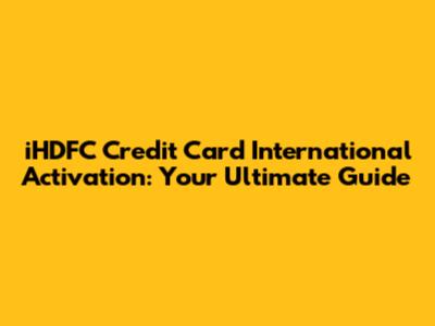 IHDFC Credit Card International Activation: Your Guide