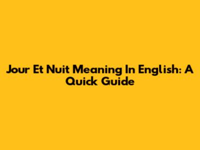 Jour Et Nuit Meaning In English: A Quick Guide