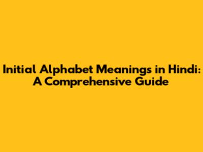 Initial Alphabet Meanings In Hindi: A Comprehensive Guide