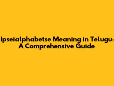 Ipseialphabetse Meaning In Telugu: A Comprehensive Guide
