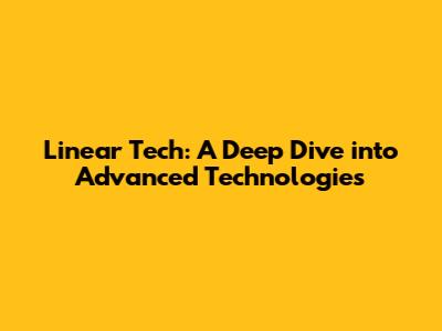 Linear Tech: A Deep Dive Into Advanced Technologies