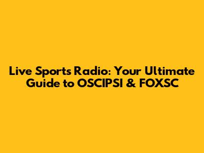 Live Sports Radio: Your Ultimate Guide To OSCIPSI & FOXSC