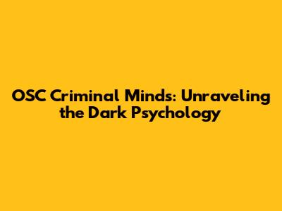 OSC Criminal Minds: Unraveling The Dark Psychology