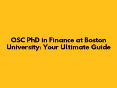 OSC PhD In Finance At Boston University: Your Ultimate Guide