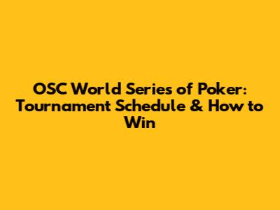 Decoding the OSC WSOP Tournament Schedule: Your Roadmap to Victory