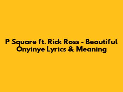 Hey guys, let's dive into the smooth vibes of "Beautiful Onyinye" by P Square featuring the boss himself, Rick Ross. This track is a serious jam, blending Afrobeats with a touch of international swagger, and the lyrics are all about celebrating that one special person who makes your world go round. We're going to break down what makes this song so captivating, from its catchy hooks to the heartfelt message.