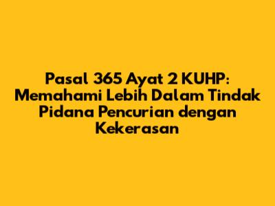 Pasal 365 Ayat 2 KUHP adalah pasal yang mengatur tentang tindak pidana pencurian dengan kekerasan atau ancaman kekerasan yang mengakibatkan luka berat. Ancaman hukumannya cukup berat, yaitu pidana penjara paling lama dua belas tahun. Penting bagi kita untuk memahami pasal ini agar kita bisa menghindari tindakan yang melanggar hukum dan menciptakan lingkungan yang aman dan damai. Semoga artikel ini bermanfaat ya, guys! Jangan lupa untuk selalu berhati-hati dan waspada di manapun kita berada.