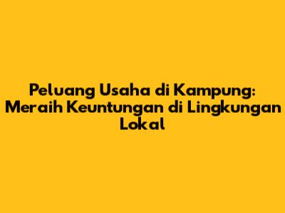 Peluang Usaha Di Kampung: Ide Bisnis Yang Menguntungkan