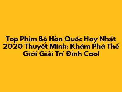 Top Phim Bộ Hàn Quốc Hay Nhất 2020 Thuyết Minh: Khám Phá Thế Giới Giải Trí Đỉnh Cao!