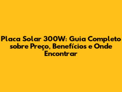 Onde Comprar Placa Solar 300W?