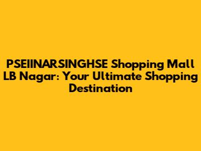 Hey there, shopaholics! Are you ready to dive into the vibrant world of PSEIINARSINGHSE Shopping Mall in LB Nagar? This place is more than just a mall; it's a bustling hub of activity, a treasure trove of brands, and a social spot where you can hang out with your friends and family. Let's explore everything that makes this mall a must-visit destination. Whether you're looking for the latest fashion trends, craving delicious food, or just want a fun day out, PSEIINARSINGHSE has got you covered. This guide will walk you through the key features, offerings, and why it's a favorite among the locals. So, grab your shopping bags, and let’s get started on this exciting journey!