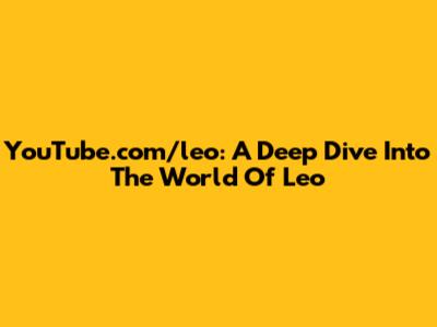YouTube.com/leo: A Deep Dive Into The World Of Leo
