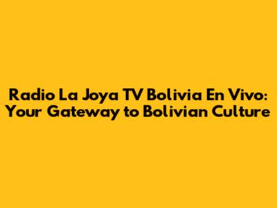 Hey guys! Are you looking for a way to connect with Bolivian culture, news, and entertainment? Look no further! Radio La Joya TV Bolivia En Vivo offers a fantastic platform to experience the heart of Bolivia, right at your fingertips. Whether you're a Bolivian expat longing for a taste of home or simply curious about this vibrant South American nation, tuning in to Radio La Joya TV is a must. Let's dive into what makes this station so special and how you can easily access its live broadcasts.