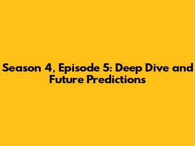 Hey guys! Let's dive deep into Season 4, Episode 5! This episode, filled with twists, turns, and those OMG moments, has got everyone talking. I know you're probably buzzing with questions, like what just happened and what could possibly be next. No worries, I've got you covered. We're going to break down all the major plot points, character developments, and even throw in some speculation about what the writers might have in store for us. So, buckle up, grab your favorite snacks, and let's get into it! This episode was a real game-changer, and it's essential to understand every single detail to fully appreciate the season's unfolding narrative. Get ready for a wild ride, because we're about to explore the heart of the story.