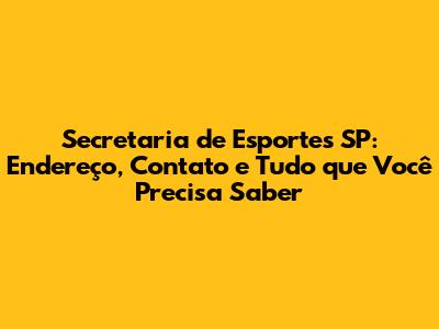 Encontrando a Secretaria de Esportes SP: Onde Ela Está?