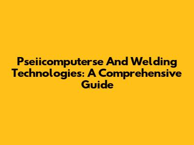 Pseiicomputerse And Welding Technologies: A Comprehensive Guide