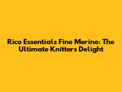 Rico Essentials Fine Merino: The Ultimate Knitters' Delight