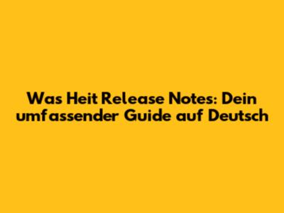 Was Heit Release Notes: Alle Infos Auf Deutsch